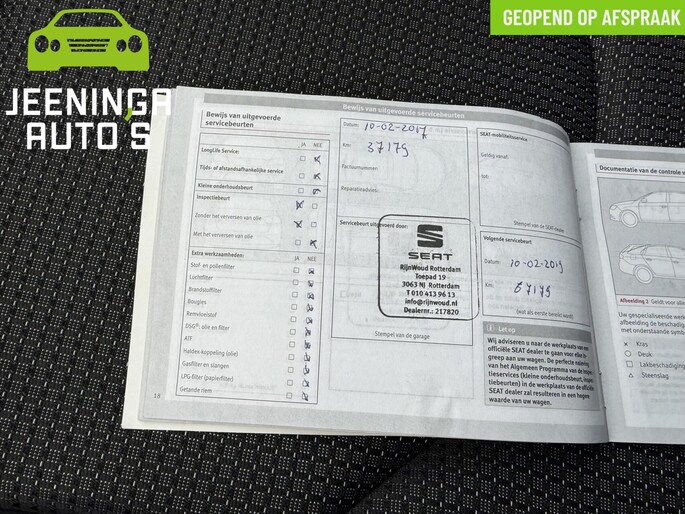 Het high performance audiosysteem staat garant voor een levendige en krachtige muziekweergave. Automatische airconditioning regelt volautomatisch de temperatuur. U kiest de gewenste temperatuur en het systeem doet de rest. Inparkeren zonder angst voor schade. De parkeersensoren helpen u om moeiteloos in de kleinste parkeervakken te manoeuvreren. Het luxeniveau in deze Seat is niet alleen gericht op comfort, maar ook op uw veiligheid. Tal van sensoren helpen u om de omgeving in de gaten te houden. De automatisch inschakelbare verlichting zorgt dat automatisch de verlichting wordt ingeschakeld als het donker wordt, wat bijvoorbeeld in tunnels erg handig is. En de regensensor zet de ruitenwissers aan zonder dat u eraan hoeft te denken. Ook op de korte stukken is de cruise control een uitkomst. Kijk maar bij de benzinepomp! Extra opties op deze auto zijn: dashboard met spraakbediening, navigatiesysteem, automatisch dimmende binnenspiegel, lederen stuur, isofix-aansluiting en centrale deurvergrendeling met afstandsbediening.