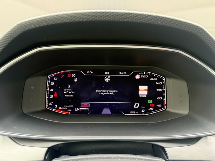 Een cockpit, een informatiecentrum... Wat is de cabine eigenlijk niet? Dankzij het digitale dashboard bent u van alles op de hoogte. Dankzij Connected Services weet u precies waar uw auto geparkeerd staat. Ook andere functies, zoals bandenspanning en brandstofniveau, zijn via de app altijd onder handbereik. Bij de luxe van deze auto hoort ook automatische airconditioning. Voor de belangrijkste functies van het geluidssysteem hoeft u uw blik niet van de weg te halen. De audiobediening bevindt zich op het stuur. De DAB-ontvanger zorgt voor een ruime keuze uit digitale radiozenders en een kristalheldere geluidsweergave. Extra opties op deze auto zijn: parkeersensoren achter, regensensor, cruise control, sportstuurwiel, automatisch dimmende binnenspiegel en centrale deurvergrendeling met afstandsbediening.