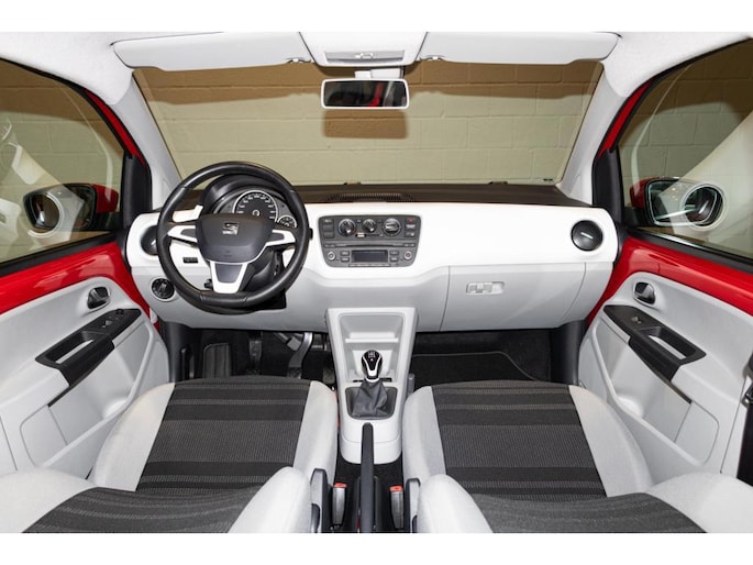 Seat voorziet de Mii van een eigen stuurwiel, een andere opdruk op de versnellingshendel en een ander paneeltje achter de belangrijkste knoppen. Heel belangrijk: bij de Volkswagen Up! loopt de lijn onder de achterruiten op. Dat staat leuk, maar maakt het voor kleine kinderen lastiger om naar buiten te kijken. De Mii is kindvriendelijker dankzij de rechte lijn onder de achterste zijruiten.