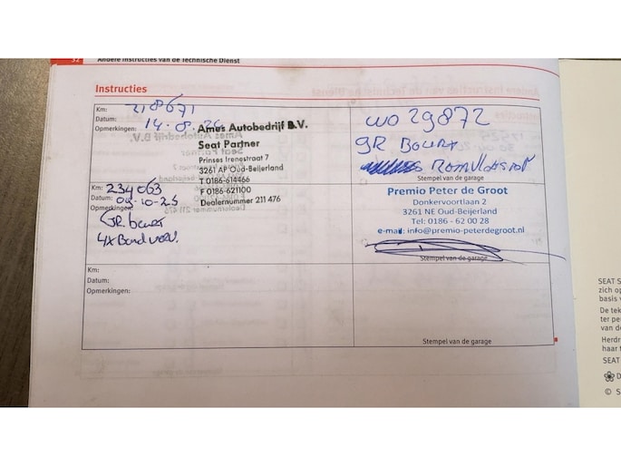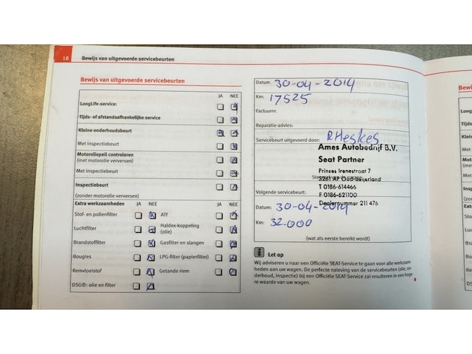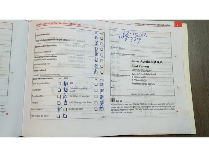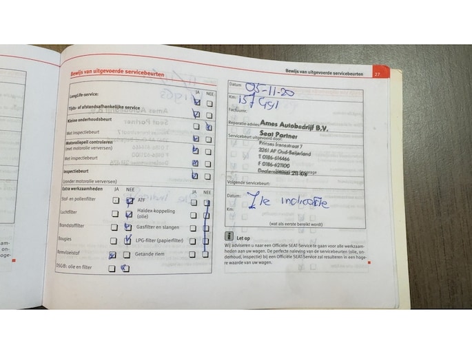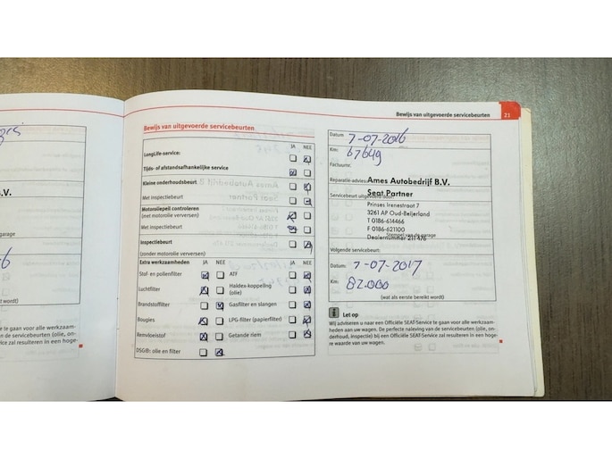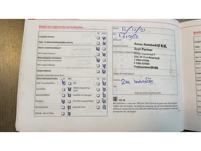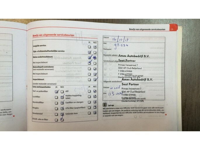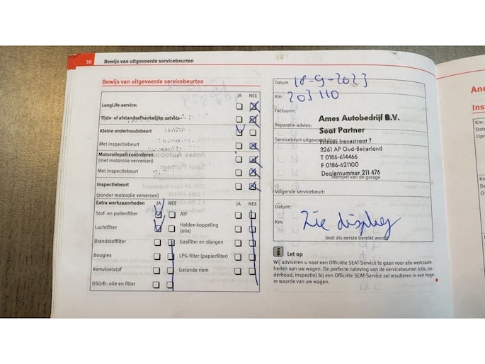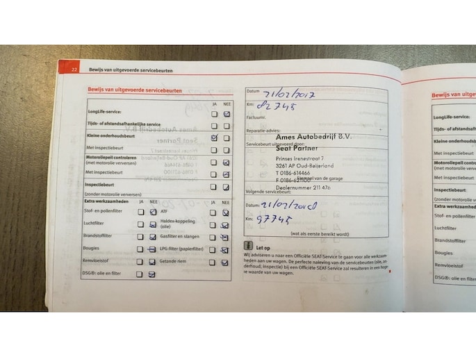 Onderhoudsboekjes: Aanwezig