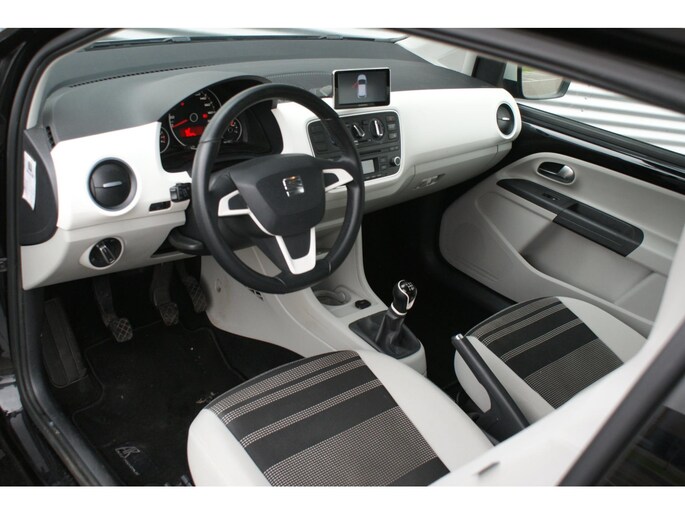 Neem plaats in de cockpit, start de motor en voel het vermogen. Met deze sportieve Seat Mii hebt u altijd de controle. De aandrijving van deze Seat wordt verzorgd door een driecilinder motor en een handgeschakelde vijfversnellingsbak. Tot de uitrusting van deze Seat behoren ook 14 inch lichtmetalen velgen, sportonderstel en in delen neerklapbare achterbank.