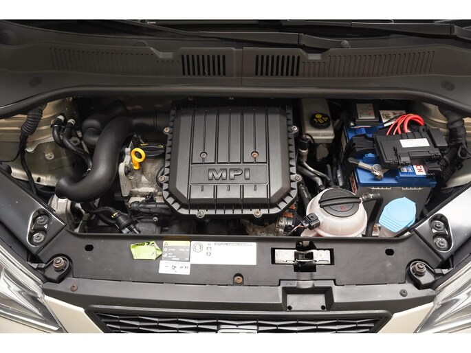 De Seat Mii heeft een benzinemotor met een vermogen van 44 KW (60 PK) en een gemiddeld verbruik van 4.10 liter per 100 km. Hij staat te koop voor € 5.445.