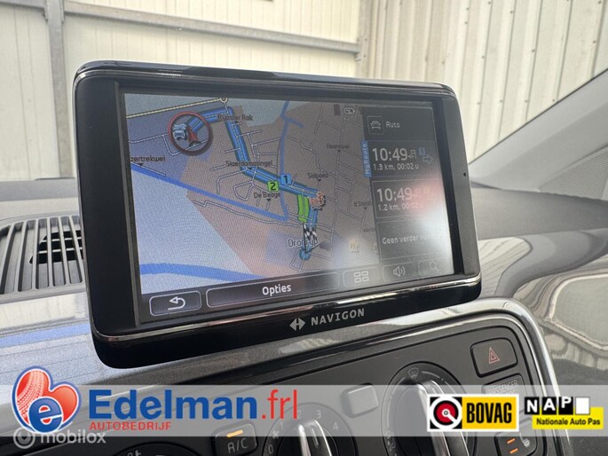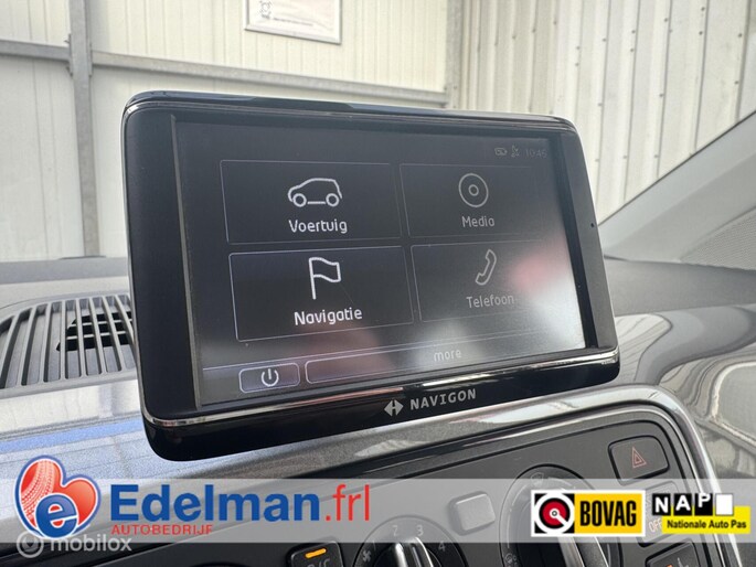Een sportieve auto, uitgevoerd met fijne opties waaronder het navigatiescherm, cruise control, parkeersensoren en stoelverwarming.