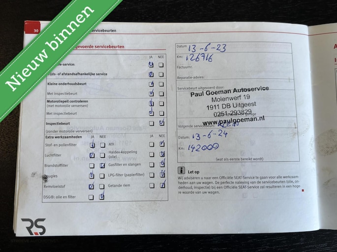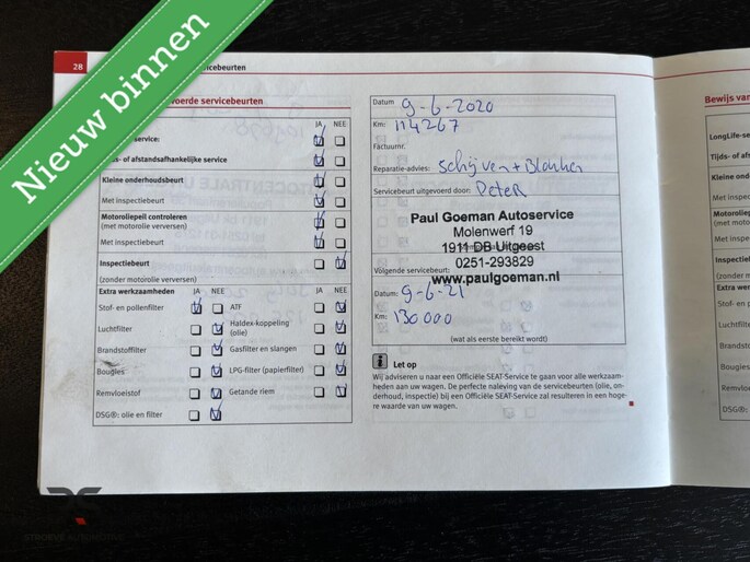 Onderhoudshistorie aanwezig: Ja