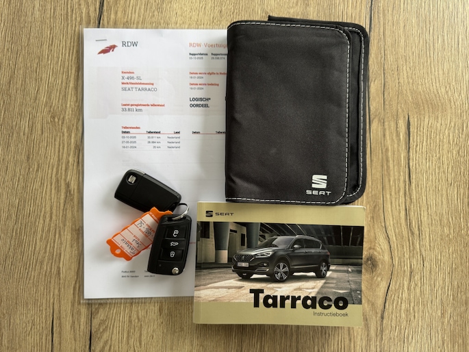 Voor een goed en duidelijk overzicht onderweg is het digitale dashboard uitermate slim ingedeeld. Dankzij de 360 graden camera op de auto, wordt manoeuvreren in smalle straatjes ineens veel eenvoudiger. Adaptive cruise control houdt de ingestelde snelheid vast en houdt automatisch afstand tot uw voorligger. Deze SEAT Tarraco maakt het u makkelijk. Vandaar ook de elektrisch inklapbare trekhaak. Zo'n lekkere jonge auto heeft natuurlijk leuke extra's, zoals remote services. Met een speciale app maakt u overal verbinding met de auto. Zo kunt u functies activeren en controleren. En dan is deze auto ook nog eens voorzien van full map navigatiesysteem, automatische airconditioning, draadloos opladen, DAB ontvangst, keyless entry en automatisch dimmende binnenspiegel.