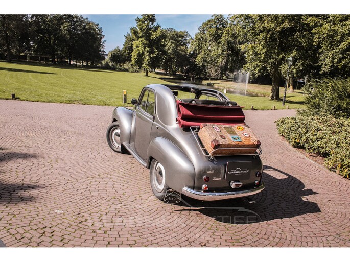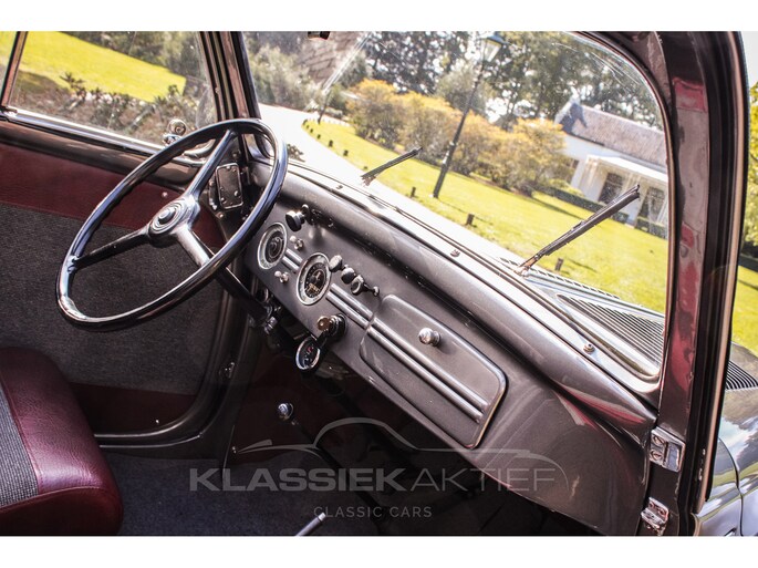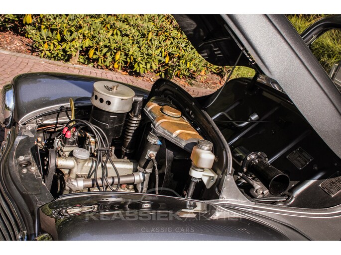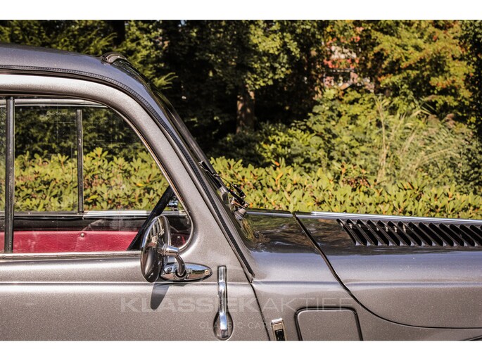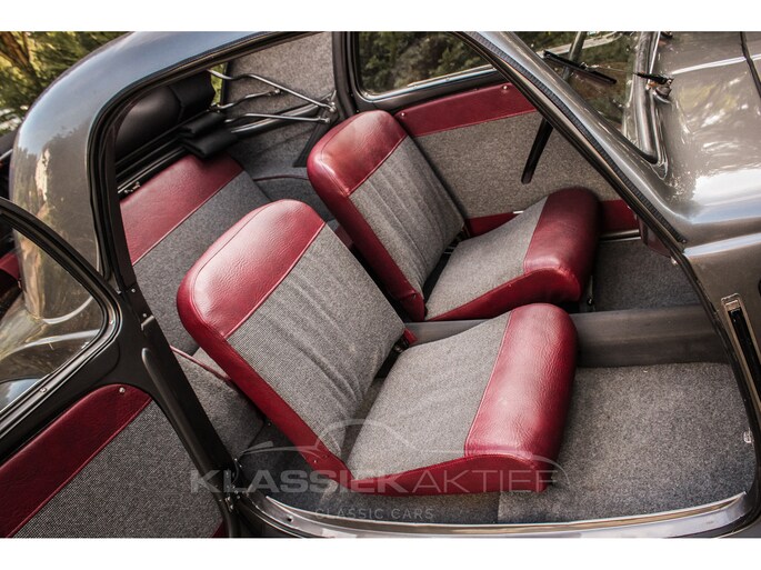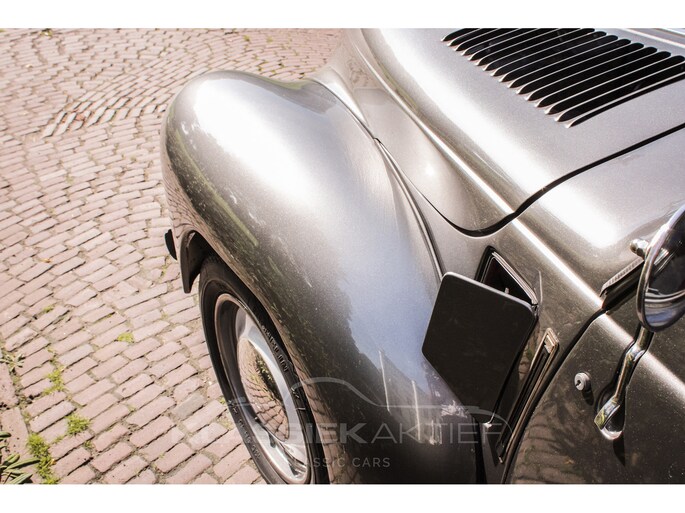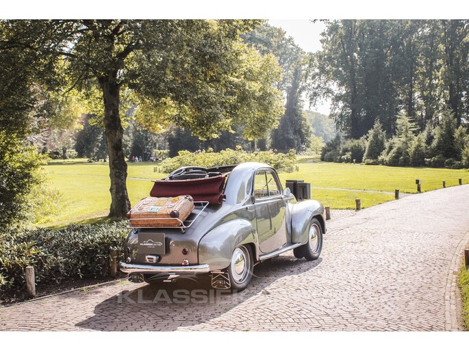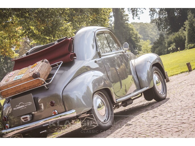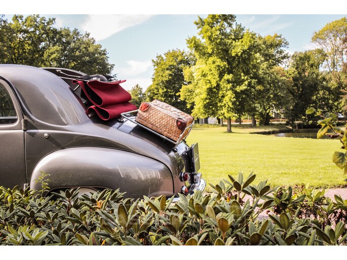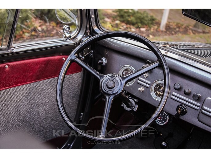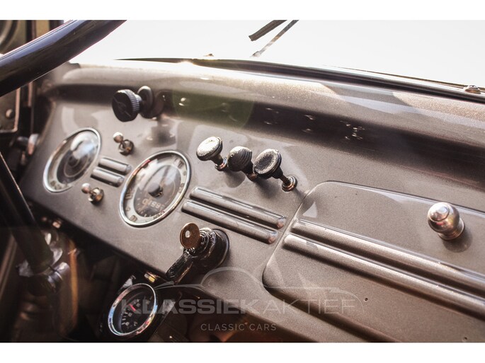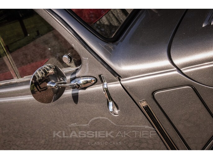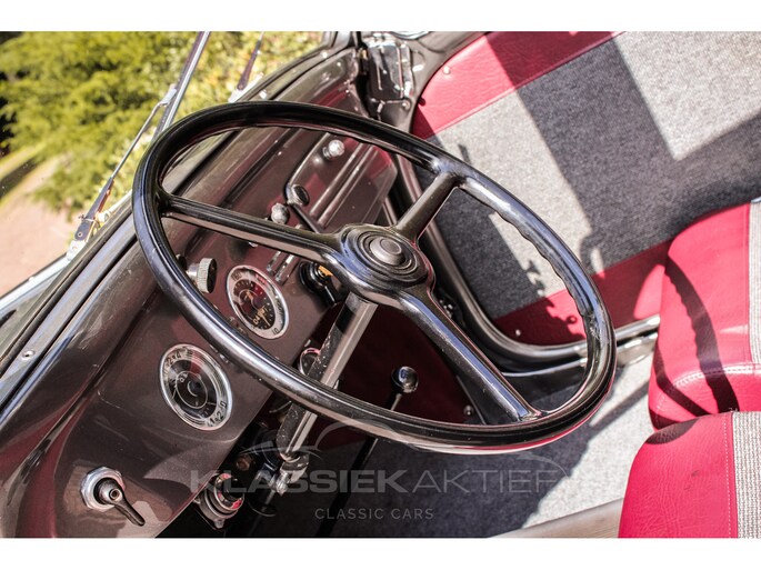 This car was originally delivered in France in 1949 and arrived in the Netherlands in 2009. After a thorough and extensive body-off restoration (photos available), the car was registered in the Netherlands in 2014. During this restoration, the car was painted in the beautiful Fiat Grigio Quarzo. This body colour is not only stunning to look at but also combines perfectly with the red/grey interior. The retractable canvas roof is in perfect condition and also in a matching red color. After the restoration, the car has been maintained with great love and care and remains in excellent condition. The body panels fit together well, and the doors close securely and well. The chrome and trim are in very good and shiny condition, and the rubber parts and trim are also in excellent condition. The white rims with chrome hubcaps are in excellent condition and make a stunning combination with this car. This also applies to the chrome luggage rack with a matching wicker basket.