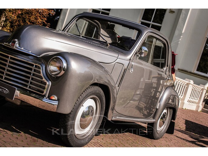 Oorspronkelijk is deze auto geleverd in 1949 in Frankrijk en in 2009 in Nederland gekomen. Na een zeer grondige en uitgebreide body-off restauratie (foto’s aanwezig) is de auto vervolgens in 2014 voorzien van een Nederlandse registratie. Tijdens deze restauratie is de auto voorzien van de prachtige Fiat kleur Grigio Quarzo. Deze carrosseriekleur is niet alleen schitterend om te zien, maar vormt ook een perfecte combinatie met het rood/grijze interieur. Het oprolbare linnen dakje is in perfecte conditie en ook in bijpassende rode kleur. Na de restauratie is de auto met zeer veel liefde en zorg onderhouden en nog steeds in uitmuntende conditie. De carrosseriedelen sluiten goed op elkaar aan en de portieren sluiten degelijk en goed. De chroom- en sierdelen zijn in zeer goede en glanzende staat en ook de rubberdelen en afwerkingen zijn in prima conditie. De witte velgen met verchroomde wieldoppen zijn in zeer goede staat en vormen een schitterende combinatie bij deze auto. Dit geldt ook voor het verchroomde kofferrek met een bijpassende rieten mand.