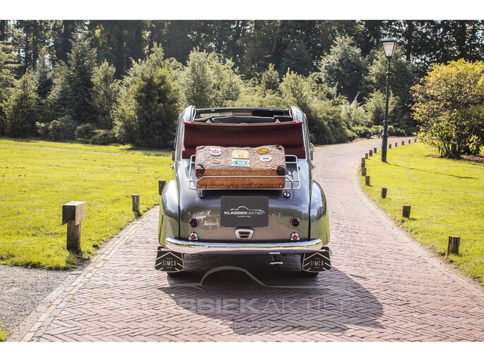 Onder de motorkap zien we een zeer keurige en verzorgde motorruimte. Het is duidelijk te zien dat de auto zeer veel liefde en zorg heeft gehad. Zelden hebben we zo’n nette motorruimte gezien. De 570 cc viercilinder motor loopt bijzonder mooi en soepel. Door het lage gewicht is het vermogen van 16 pk voldoende om soepel en comfortabel te rijden. De remmen voelen goed en stevig aan en het sturen gaat bijzonder soepel. Schakelen gaat ook erg makkelijk en trefzeker. En dat alles maakt deze compacte klassieke Simca tot een heerlijke rijdersauto.