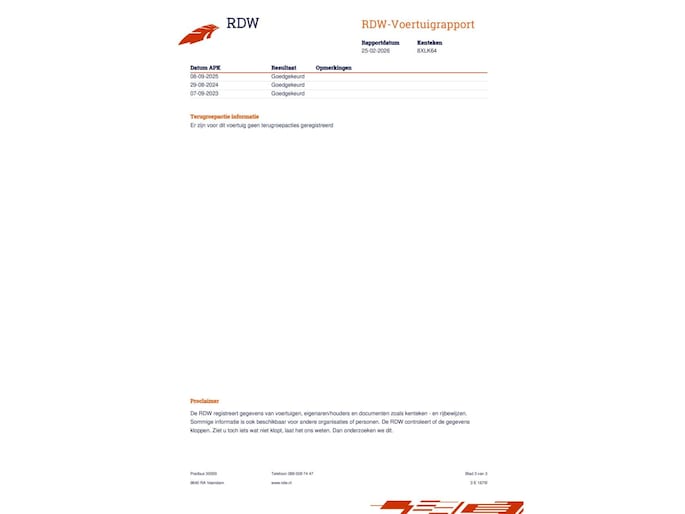Kilometerstand gecontroleerd