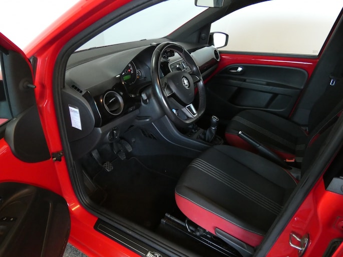 Het interieur van deze Skoda Citigo is net zo sportief als zijn exterieur. De bestuurdersstoel is in hoogte verstelbaar, zodat u altijd de juiste zitpositie kunt vinden. Het stuur en de versnellingspook zijn afgewerkt met kunstleder wat zorgt voor een luxe uitstraling. De mistlampen aan de voorzijde verbeteren het zicht tijdens slechte weersomstandigheden en de passagiersairbag zorgt voor extra veiligheid voor uw medepassagiers.
