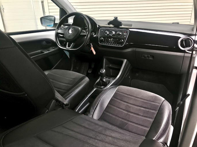 Alle technologie in de ŠKODA Citigo is er op gericht om uw rit veilig en gemakkelijk te laten verlopen. Dit mooie exemplaar uit 2017 heeft 154911 kilometer op de teller staan. Met deze ŠKODA is een pittige rijstijl mogelijk, terwijl de motor toch spaarzaam met brandstof omgaat. De uitmonstering van deze auto wordt gecompleteerd door onder meer 14 inch lichtmetalen velgen en in delen neerklapbare achterbank.