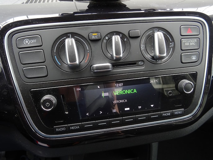 Het stuur van deze auto heeft uiteenlopende functies. Ook om het geluid te regelen. De audiobediening op het stuur draagt daarom actief bij aan een veilige rit. In deze ŠKODA kunt u zich concentreren op het verkeer, terwijl de auto de omgeving voor u in de gaten houdt. Een automatisch inschakelbare verlichting zorgt dat de verlichting aangaat als het donkerder wordt - in tunnels bijvoorbeeld - en de regensensor schakelt de ruitenwissers in als het nodig is. U hoeft er niets aan te doen. Meer rijcomfort en minder brandstofgebruik? Even de cruise control instellen en dan ontspannen rijden! Muziek vanaf uw telefoon draadloos afspelen via de autoradio? Met smartphone connectiviteit heeft u altijd uw favoriete muziek bij de hand. Het spreekt voor zich dat u in deze auto ook airconditioning aantreft. En deze auto heeft ook sportstuurwiel, centrale deurvergrendeling met afstandsbediening en boordcomputer als standaard uitrusting.