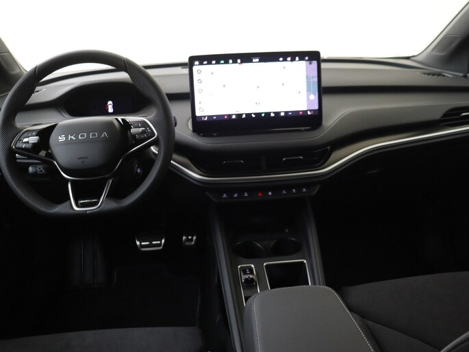 Welkom bij Auto Hoogenboom! Deze nieuwe, ruime en sportieve Škoda Elroq Sportline Business bevat opties zoals: business upgrade plus (keyless entry, draadloze telefoonlader, getint glas achter, alarmsysteem en adaptive cruise control, LED Matrix koplampen, elektrisch te openen en sluiten achterklep) en elektrisch wegklapbare trekhaak.
