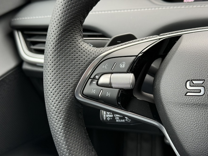 U zult het zien: overstappen naar elektrisch rijden kost u geen enkele moeite als u kiest voor deze ŠKODA Elroq. De techniek van deze auto is radicaal anders dan u gewend bent. U rijdt zacht zoemend naar uw bestemming, de actieradius van de accu's is ruimschoots voldoende voor de meeste dagelijkse ritten. Het is vermeldenswaard dat deze auto maar 1009 kilometer heeft gereden sinds 2026. Een krachtige motor geeft deze auto zijn sportieve prestaties. De verwarmbare voorstoelen benadrukken nog maar eens dat we hier te maken hebben met een regelrechte verwenauto voor bestuurder en bijrijder. Luxepaardjes en levensgenieters worden enthousiast van de verwarmde achterbank. De uitmonstering van deze auto wordt gecompleteerd door onder meer 20 inch lichtmetalen velgen, LED koplampen, sportonderstel, geluidsisolerende ramen, sportinterieur en in delen neerklapbare achterbank.