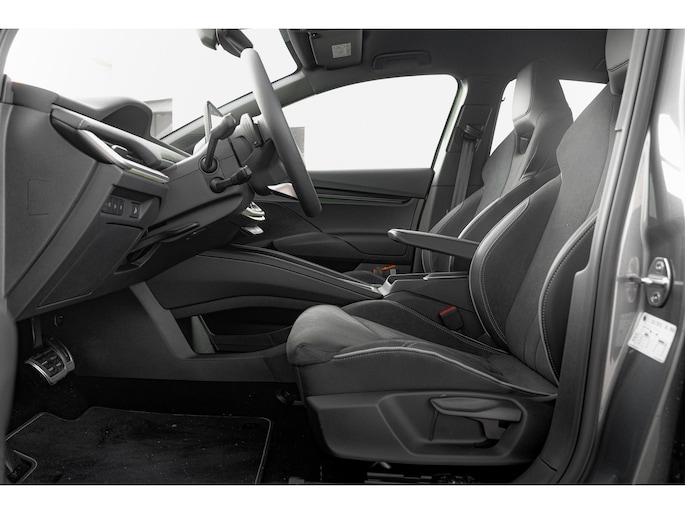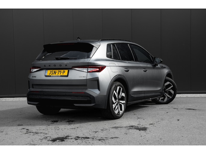Iedere rit in een elektrische auto is een weldaad: u rijdt ontspannen en in alle rust, er is volop vermogen en u komt verkwikt op uw bestemming aan. Het aantal kilometers dat u op een acculading kunt rijden, is ruimschoots genoeg voor de gangbare dagelijkse ritten, en het opladen kan in de meeste gevallen 's nachts gebeuren. We hebben het hier over een nieuwe auto, hij is nu direct leverbaar. De krachtige motor geeft deze Škoda uitstekende prestaties. Een koude start op frisse dagen? Niet met de behaaglijke stoelverwarming. Tot de voorzieningen van deze auto behoren LED koplampen met LED dagrijverlichting, sportonderstel, zwarte hemelbekleding en LED-achterlichten. De achteruitrijcamera brengt precies in zicht wat zich achter u bevindt en toont een glashelder beeld op hoge resolutie. Een geluidssignaal waarschuwt hoeveel ruimte u nog heeft. De juiste ruitenwisserfrequentie gaat automatisch van motregen tot noodweer, de regensensor reageert direct. De cruise control heeft een feilloos geheugen. Als u even vaart heeft geminderd, bent u na één klik weer op de oude snelheid. Met dashboard met spraakbediening, DAB+ radio, automatisch dimmende binnenspiegel, hifi-luidsprekers en elektronische parkeerrem is deze auto helemaal compleet. Deze auto is voorzien van innovatieve systemen die u onderweg begeleiden en beschermen. Een ongeluk zit in een klein hoekje. Het accident avoidance system kijkt met u mee en helpt om ongevallen te voorkomen. Wordt dit uw nieuwe auto? We verwelkomen u graag om u deze Elroq te laten zien, en dan leggen we u ook uit welke financieringsvormen we erbij kunnen aanbieden.