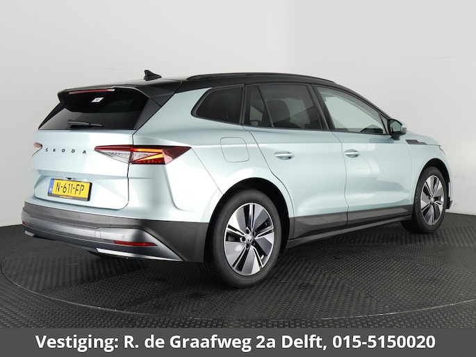 Efficiënte techniek en ongekende dynamiek. Het plezier van elektrisch rijden gaat in deze Skoda Enyaq iV samen met een spaarzaam stroomverbruik. De elektromotor is stil en schoon. En met een verrassend grote actieradius! De elektrisch bedienbare achterklep opent met een druk op de knop. Tot de voorzieningen van deze auto behoren 19 inch lichtmetalen velgen, LED koplampen, in hoogte verstelbare passagiersstoel, donker getint glas achter, in delen neerklapbare achterbank en LED-achterlichten.