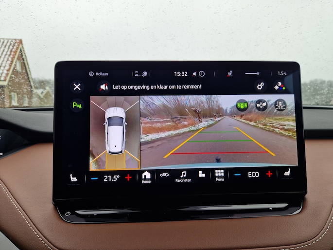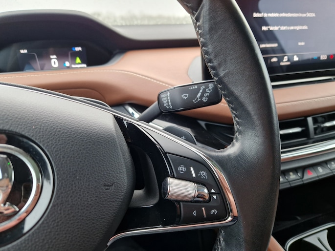 Snelheid, brandstofinfo, noem maar op. Het digitale dashboard houdt u permanent op de hoogte. Goed en overzichtelijk. Inparkeren? Met de achteruitrijcamera heeft u er geen omkijken meer naar! Adaptive cruise control is een comfortabele en veilige optie. Het systeem reguleert de snelheid en houdt automatisch afstand tot uw voorligger. Spraaksturing maakt het eenvoudiger en veiliger om deze auto onderweg te bedienen. Mocht zich een probleem voordoen, dan krijgt u via remote services op uw smartphone te zien wat er precies aan de hand is, waar u ook bent. Deze Skoda is voorzien van navigatiesysteem, electronic climate control, draadloos opladen, DAB ontvangst, regensensor en keyless entry.