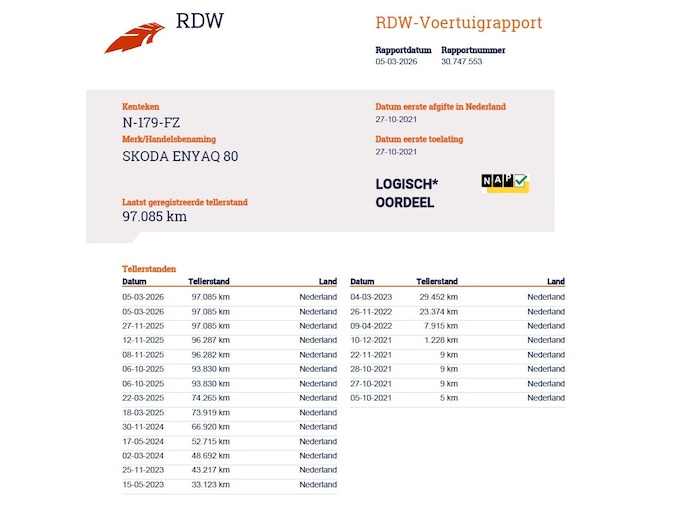 Kilometerstand gecontroleerd