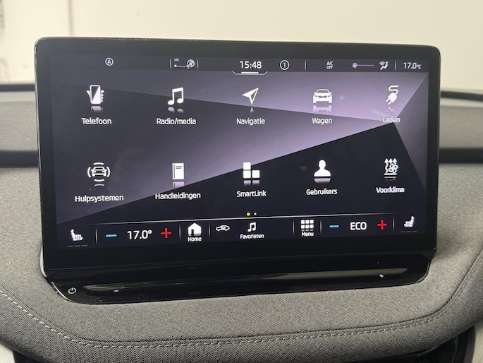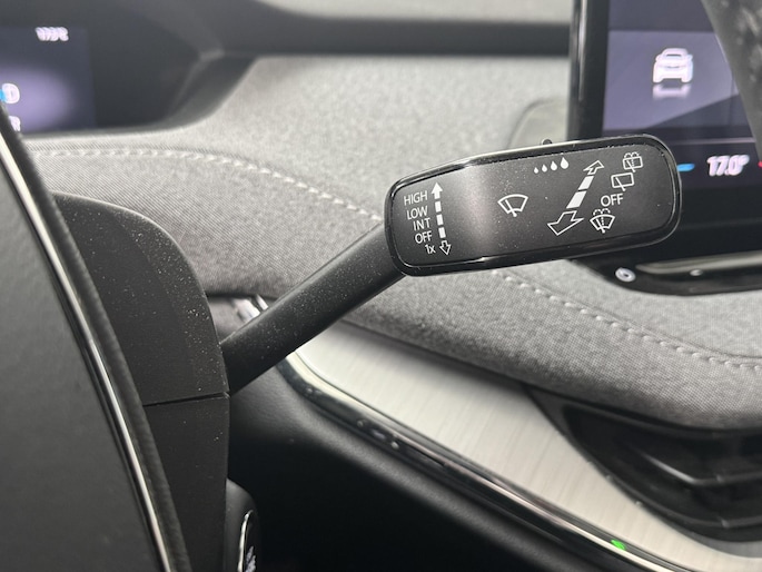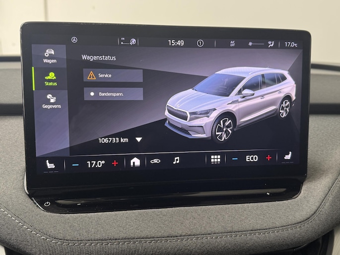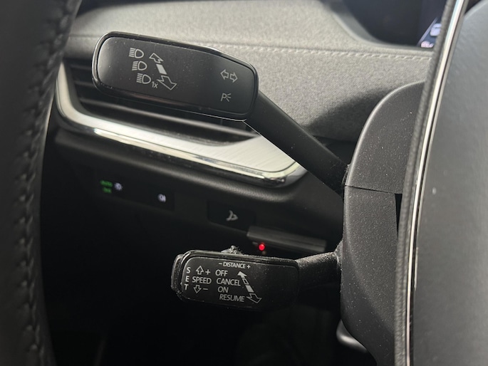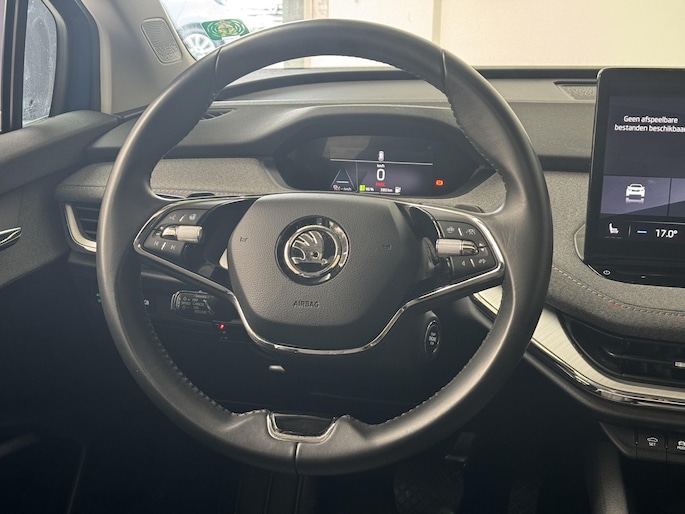 Zoals u mag verwachten van deze Skoda Enyaq iV is hij uitgerust met een reeks aan actieve veiligheidssystemen. Het Lane-keeping systeem zorgt dat u mooi binnen de lijntjes blijft. Ongemerkt buiten de rijstrook komen is er niet meer bij. Botsingen met een voorligger gebeuren relatief vaak. De forward collision warning slaat tijdig alarm als dat risico ontstaat, zodat u kunt ingrijpen. Een belangrijke bijdrage aan de veiligheid in deze auto is de vermoeidheidsherkenning, die waarneemt wanneer de bestuurder tekenen van vermoeidheid vertoont. In deze Skoda vinden we verder een dodehoekdetectie, frontale botsbescherming en bandenspanningcontrolesysteem.