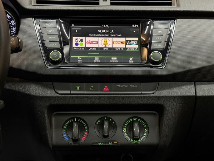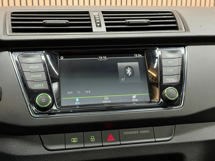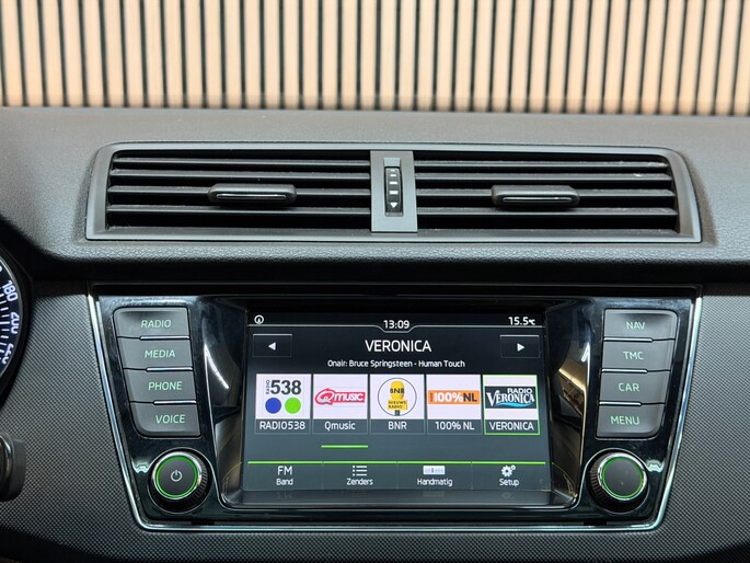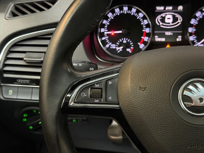 Deze Skoda is voorzien van knoppen op het stuur om het navigatiesysteem en het audio-installatiesysteem met DAB-ontvangst te bedienen. Of het buiten nu warm is of koud, dankzij automatische airconditioning is het binnen altijd behaaglijk. De meeste schade bij inparkeren komt van een randje of paaltje dat u even niet zag. Maar de parkeersensoren zien alles en waarschuwen op tijd. Meer rijcomfort en minder brandstofgebruik? Even de cruise control instellen en dan ontspannen rijden! Deze auto is voorzien van automatisch dimmende binnenspiegel, lederen stuur, centrale deurvergrendeling met afstandsbediening, bagage afdekhoes, boordcomputer en lederen versnellingspook.