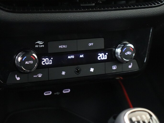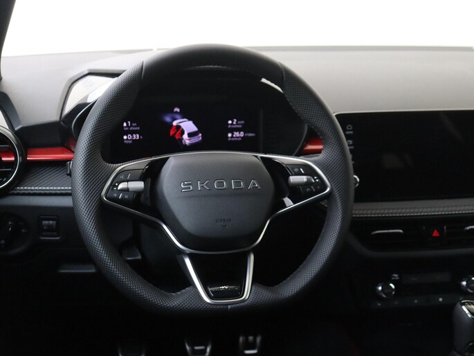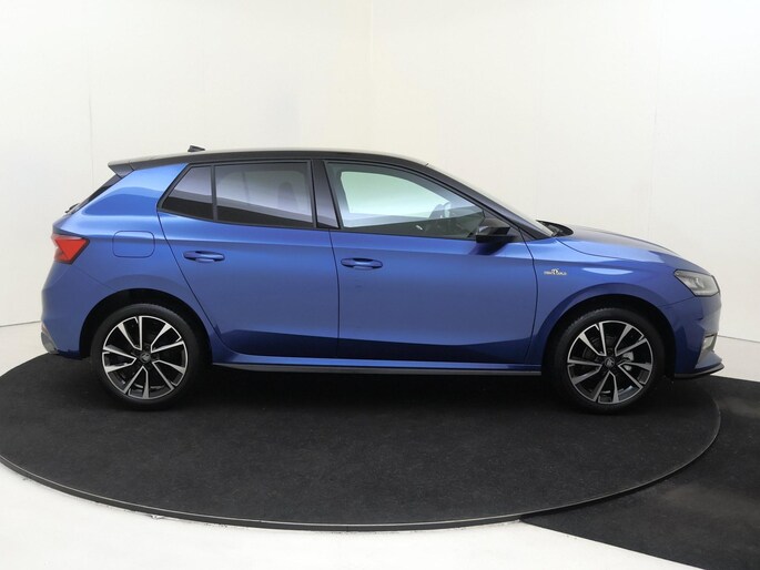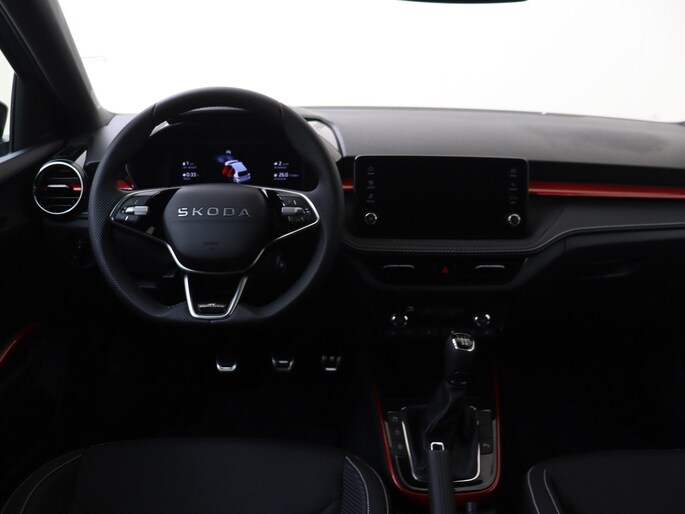 Daarnaast is deze Fabia standaard al uitgerust met bijvoorbeeld 16” lichtmetalen velgen, sportstoelen, sportstuurwiel, zwarte grille, keyless entry, 8,25” multimediasysteem, 8” digitaal instrumentenpaneel, achteruitrijcamera, drive mode select, getint glas achter, parkeersensoren voor en achter, verkeersbordherkenning, climate control met 2 klimaatzones, chromen raamlijsten, DAB, buitenspiegels elektrisch inklapbaar, LED koplampen, LED achterlichten, draadloze Android Auto & Apple Carplay, startknop, elektrische ramen voor en achter, middenarmsteun voor, licht- en regensensor, bluetooth, etc.