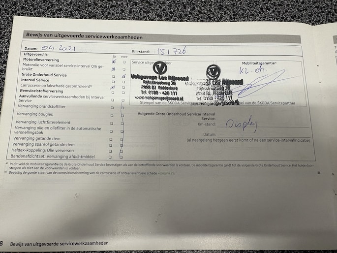 Kilometerstand gecontroleerd