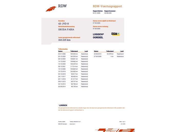 Kilometerstand gecontroleerd