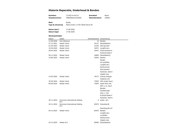 Kilometerstand gecontroleerd