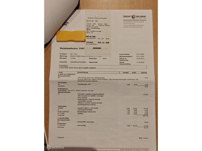 - Boekjes en onderhoudsfacturen