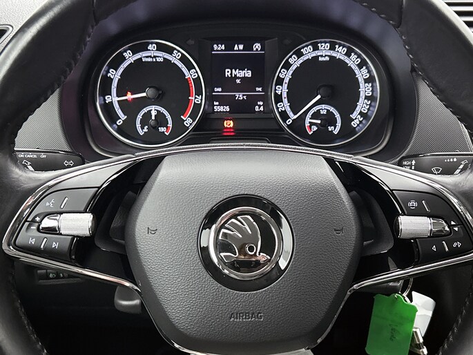 In deze auto beschik jij natuurlijk over een full map navigatiesysteem. Het audio-installatiesysteem met DAB-radio biedt glasheldere geluidskwaliteit. Je bedient dit veilig via het stuurwiel. Met de automatische airconditioning selecteer jij de gewenste temperatuur. Het systeem doet de rest. Kom-maar-kom-maar...ho! Zo eenvoudig is het voordeel van parkeersensoren. En zo behulpzaam! Cruise control houdt automatisch de ingestelde snelheid vast. Zo kun je je volledig op het verkeer concentreren. De uitrusting van deze ŠKODA is met automatisch dimmende binnenspiegel, lederen stuur, centrale deurvergrendeling met afstandsbediening, boordcomputer en lederen versnellingspook behoorlijk compleet.