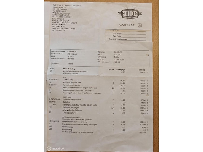 De distributieriem is vervangen op 12 maart 2025 bij 159.400km!