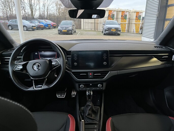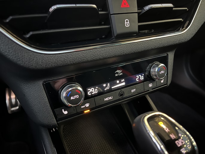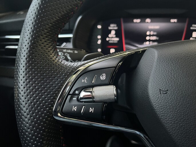 Het systeem controleert alle belangrijke functies en geeft die perfect weer via het digitale dashboard. Inparkeren? Met de achteruitrijcamera heb je er geen omkijken meer naar! Waar je zelf ook bent, je staat altijd in contact met de auto via de app op uw smartphone. Zo controleer je uiteenlopende functies, ook op afstand. Natuurlijk is er ook electronic climate control aanwezig. De audiobediening op het stuur zorgt dat muziek en informatie kunnen worden aangepast zonder het zicht op de weg te verliezen. Ook is de ŠKODA uitgerust met: schakelpaddles aan het stuur, draadloos opladen, DAB ontvangst, regensensor, cruise control en centrale deurvergrendeling met afstandsbediening.