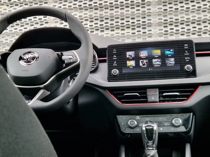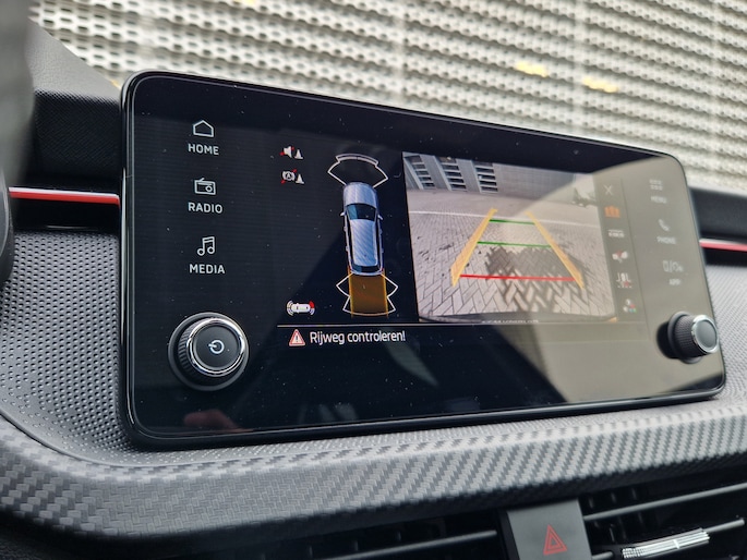 In deze auto zijn verschillende technologieën aanwezig die voor jou het verkeer en de omgeving in de gaten houden en die desnoods ook kunnen remmen of bijsturen. Dat de auto steeds meer taken van de bestuurder overneemt, merk je bijvoorbeeld aan het systeem voor verkeersbord-detectie in deze ŠKODA. Het Lane-keeping systeem registreert permanent of je binnen de lijnen van de rijstrook blijft; dwaal je onbedoeld af, dan waarschuwt het systeem en corrigeert de koers. De forward collision warning reduceert het gevaar van een botsing met een voorligger significant. In deze ŠKODA vinden we verder een hill hold functie, vermoeidheidsherkenning, autonoom remsysteem en bandenspanningcontrolesysteem.