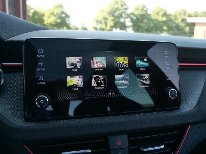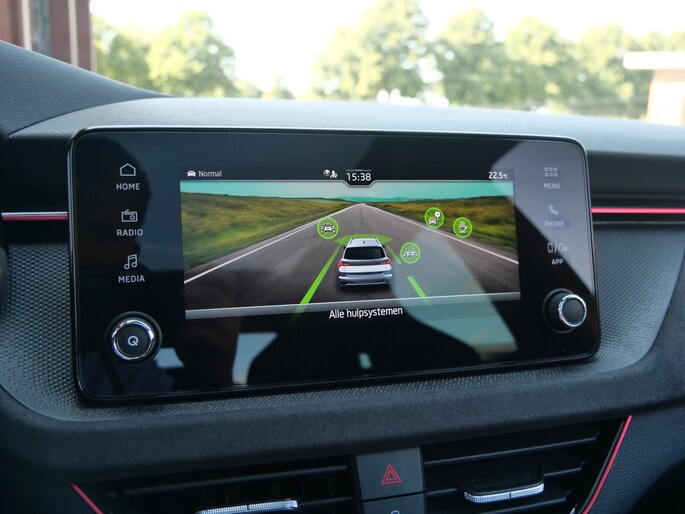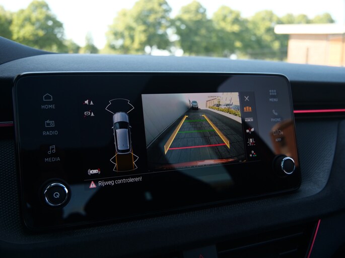 De nieuwste veiligheidssystemen komen in deze ŠKODA Kamiq samen. Onderweg fungeert de verkeersbord-detectie als het ware als uw bijrijder en attendeert u op de verkeersborden langs de weg. Indien u onbedoeld de rijstrook lijkt te verlaten, reageert het Lane-keeping systeem meteen en corrigeert. Het risico van een kop-staartbotsing wordt aanzienlijk verminderd door de forward collision warning. Verder is deze auto uitgerust met hill hold functie, vermoeidheidsherkenning, autonoom remsysteem en bandenspanningcontrolesysteem.