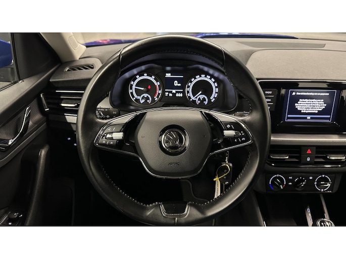 Uw smartphone is tegenwoordig de sleutel tot heel veel. Ook voor deze auto. Remote services, noemen we dat. Waar u ook bent, contact houden is een eitje. De bediening van het audio-installatiesysteem gebeurt met knoppen op het stuur en als u wilt zelfs met uw stem. De audio is overigens voorzien van DAB-radio voor een altijd heldere ontvangst. Parkeerplekken worden er niet ruimer op. Maar met de aanwezige parkeersensoren krijgt u deze Skoda Kamiq zonder problemen op z'n plaats. Zuinig zoeven, dat kan deze auto dankzij de aanwezige cruise control. Allicht is er in deze auto ook airconditioning. En deze auto heeft ook lederen stuur, isofix-aansluiting, centrale deurvergrendeling met afstandsbediening, boordcomputer en lederen versnellingspook als standaard uitrusting.