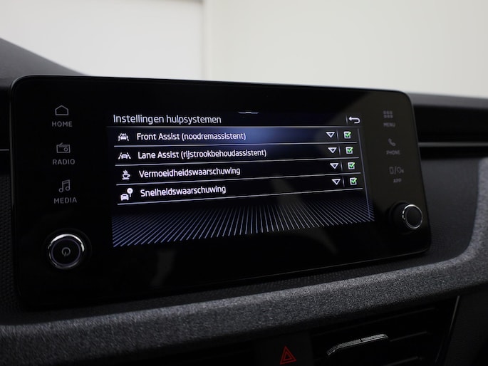 De nieuwste veiligheidssystemen komen in deze Skoda Kamiq samen. Belangrijk voor uw veiligheid en die van uw passagiers is de verkeersbord-detectie in deze auto. Met het Lane-keeping systeem gaat u nooit onbedoeld over de streep. Het forward collision warning-systeem berekent via een sensor de afstand tot het verkeer vóór u en komt in actie als er gevaar bestaat van een botsing. U bent mede dankzij front assist, hill hold functie, vermoeidheidsherkenning, autonoom remsysteem en bandenspanningcontrolesysteem steeds veilig onderweg.
