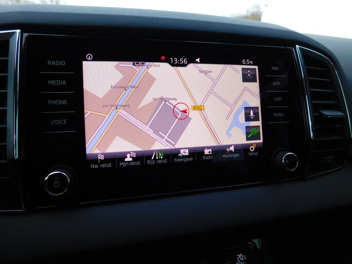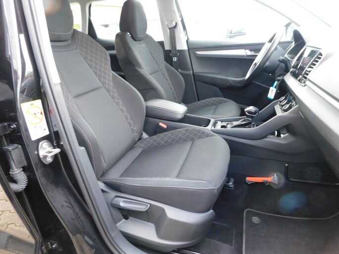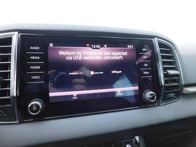 Met de ingebouwde spraakbediening kunt u de belangrijkste voertuigsystemen bedienen met stemcommando's. Er is geen bestemming die het aanwezige navigatiesysteem met harde schijf niet kent. Dat rijdt lekker! Altijd en overal verbonden: dat kan dankzij de ingebouwde WIFI-hotspot. De automatische airconditioning zorgt voor een prettige binnentemperatuur. Nieuwe smartphones hebben geen snoeren meer nodig om op te laden. Daarom heeft deze ŠKODA Karoq een draadloze oplaadmogelijkheid voor telefoons waarmee u onderweg simpel en effectief voor een volle accu zorgt. Met WIFI-hotspot, parkeersensoren achter, regensensor, cruise control, automatisch dimmende buitenspiegels en lederen stuur is deze auto helemaal compleet.