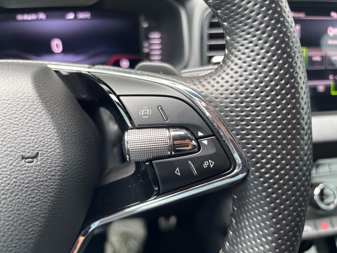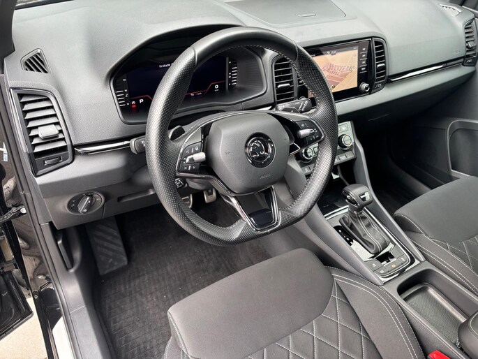 Zeer nette en complete Skoda Karoq met 1.5 liter benzinemotor met 150 pk, gekoppeld aan een 7-traps volautomatische versnellingsbak. In de sportieve Sportline uitvoering is deze auto o.a. voorzien van achteruitrijcamera, adaptieve cruise control, Apple Carplay / Android Auto, elektrische achterklep, carbonafwerking in interieur, DAB+ radio, dakrails, digitale cockpit, draadloze telefoonlader, hill-hold functie, keyless entry & start, lichtmetalen velgen 18 inch, navigatiesysteem, parkeersensoren voor en achter, sportstoelen, sportstuur, stoelverwarming en stuurverwarming.