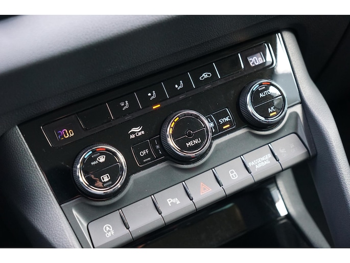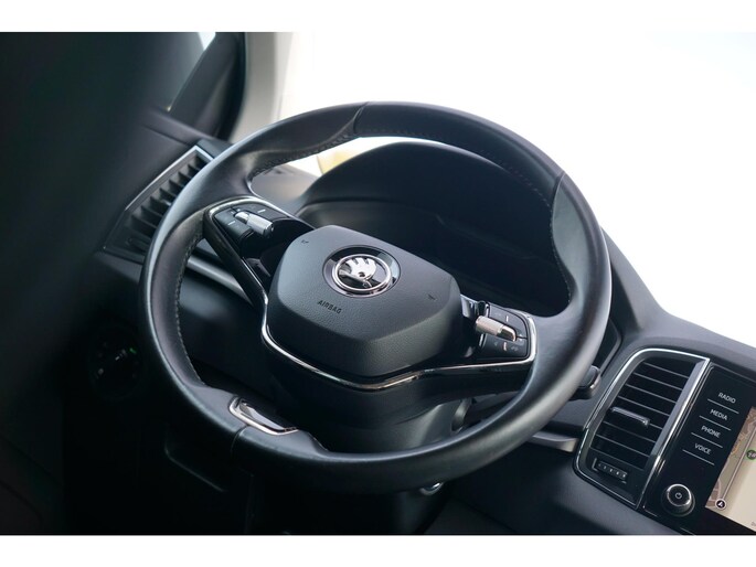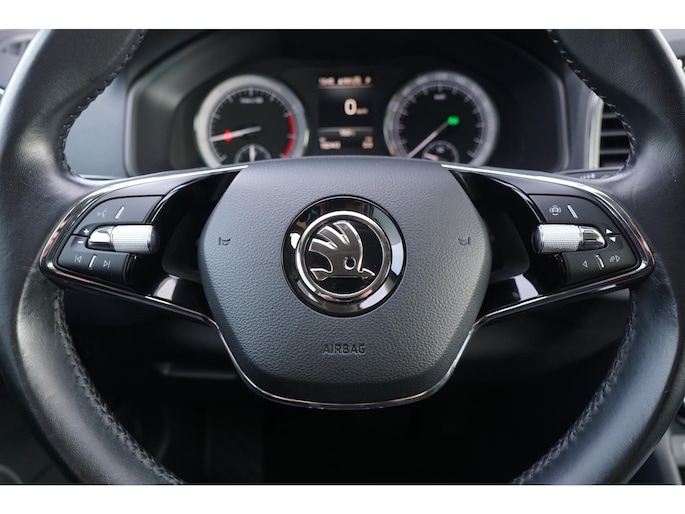 Zo'n lekkere jonge auto heeft natuurlijk leuke extra's, zoals remote services. Met een speciale app maakt u overal verbinding met de auto. Zo kunt u functies activeren en controleren. U kunt het audiosysteem met DAB-ontvangst en het navigatiesysteem met harde schijf bedienen met de knoppen op het stuur of zelf met uw stem. Automatische airconditioning regelt volautomatisch de temperatuur. U kiest de gewenste temperatuur en het systeem doet de rest. Achter het stuur van deze Skoda bent u niet alleen. De auto kijkt als het ware met u mee tijdens de rit. De regensensor schakelt de ruitenwissers in als het nodig is en de automatisch inschakelbare verlichting doet de lichten voor u aan. De cruise control levert een mooie, gelijkmatige koers. Dat rijdt prettig. Wat u ook in deze auto kunt vinden zijn automatisch dimmende binnenspiegel, lederen stuur, centrale deurvergrendeling met afstandsbediening, boordcomputer en lederen versnellingspook.