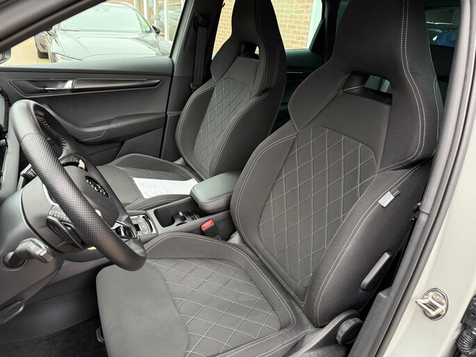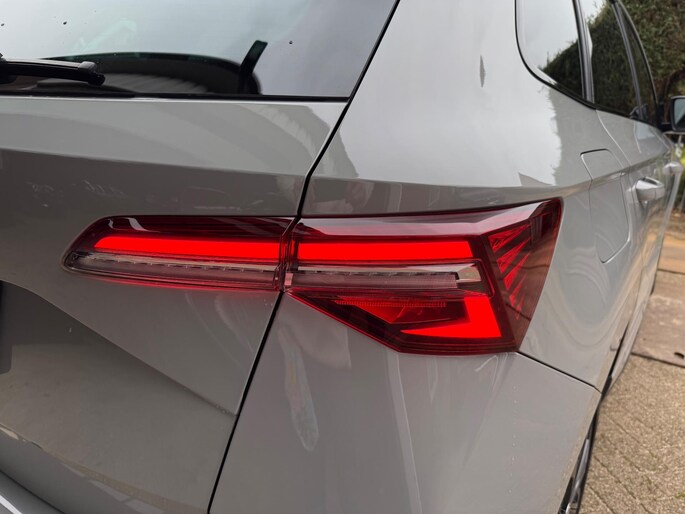 De nieuwe Škoda Karoq 1.5 TSI ACT Sportline Business is dé SUV waarin stijl, comfort en praktische functionaliteit samenkomen. Deze krachtpatser met een motorvermogen van 110 kW (150 PK) en een topsnelheid van 210 km/u overtuigt niet alleen met zijn prestaties maar ook door zijn rijkelijke uitrusting en elegante grijze metallic exterieur.