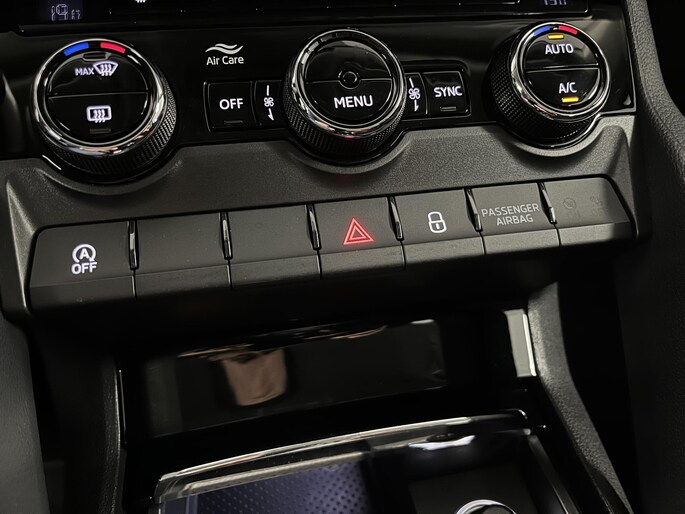 U kunt tijdens de rit uw ogen steeds op de weg houden, want het audio-installatiesysteem (met DAB!) kunt u bedienen vanaf het stuur of met spraak. De automatische airconditioning zorgt voor een behaaglijk klimaat in de auto. Met de hulp van de parkeersensoren kost inparkeren en uitparkeren u geen enkele moeite. Het luxeniveau in deze Skoda is niet alleen gericht op comfort, maar ook op uw veiligheid. Tal van sensoren helpen u om de omgeving in de gaten te houden. De automatisch inschakelbare verlichting zorgt dat automatisch de verlichting wordt ingeschakeld als het donker wordt, wat bijvoorbeeld in tunnels erg handig is. En de regensensor zet de ruitenwissers aan zonder dat u eraan hoeft te denken. Natuurlijk is er ook cruise control aan boord, waarmee u meer ontspannen en zuiniger rijdt. En deze auto heeft ook automatisch dimmende buitenspiegels, lederen stuur, boordcomputer en lederen versnellingspook als standaard uitrusting.