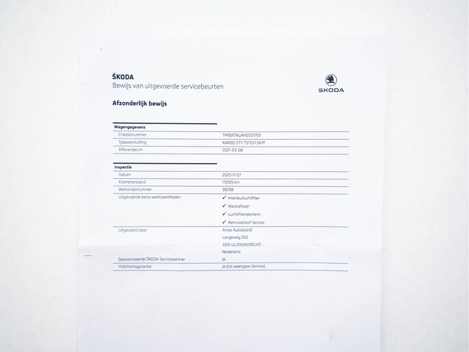 Kilometerstand gecontroleerd