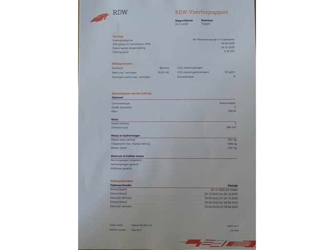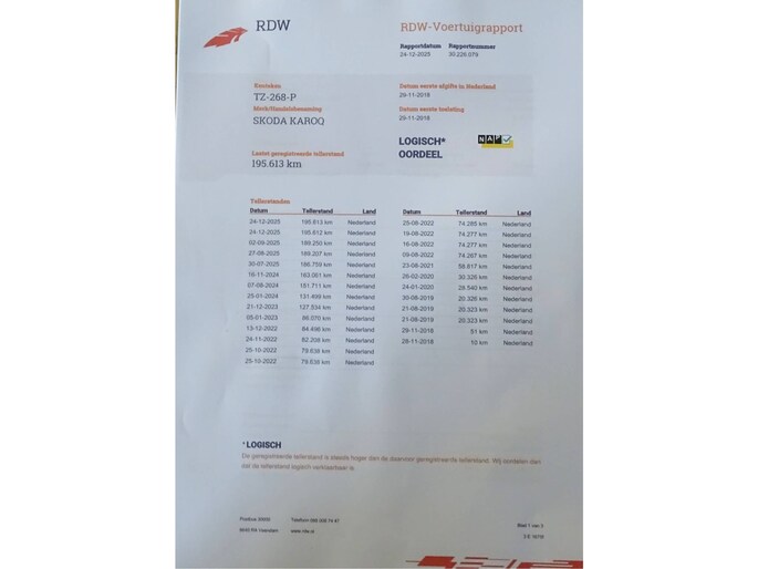Kilometerstand gecontroleerd