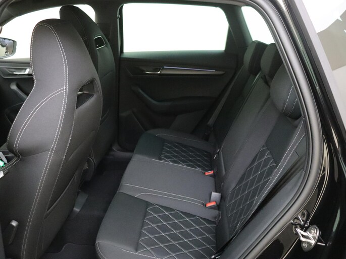 Welkom bij Auto Hoogenboom! Deze sportieve, ruime en hoge Škoda Karoq Sportline Business bevat opties zoals: 19" lichtmetalen velgen, travel assist pakket (dodehoeksensoren en adaptive cruise control), middenconsole achter met 230V aansluiting en USB-c aansluitingen, navigatiepakket en elektrische achterklep met voetbediening.