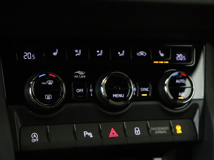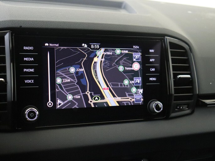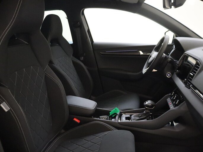 Daarnaast is deze Karoq standaard al uitgerust met bijvoorbeeld 18” lichtmetalen velgen, Full LED Matrix koplampen, spiegelkappen in hoogglans zwart, grille in hoogglans zwart, meegespoten bumperdelen, sportstoelen, zwarte dakhemel, LED interieurverlichting inclusief sfeerverlichting, LED achterlichten met dynamische knipperlichten, climate control met 2 klimaatzones, parkeersensoren voor en achter, achteruitrijcamera, keyless entry, getint glas achter, 8” multimediasysteem met draadloze Android Auto & Apple Carplay, 10” digitaal instrumentenpaneel, bluetooth, startknop, cruise control, etc.