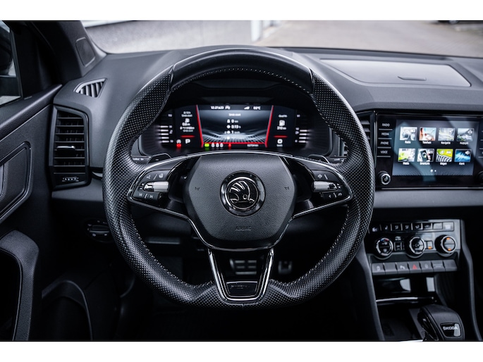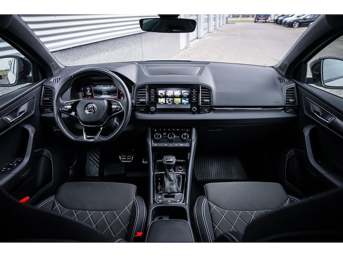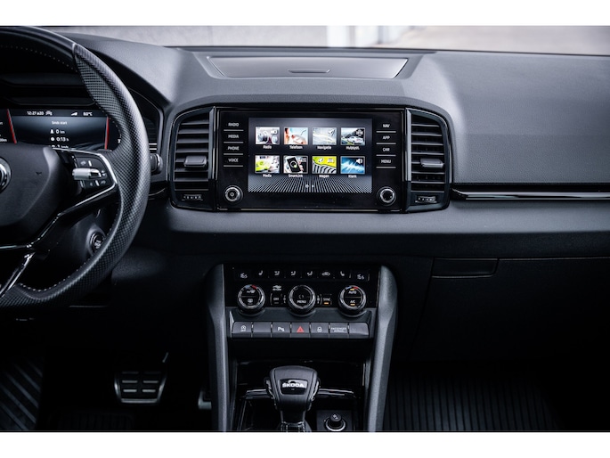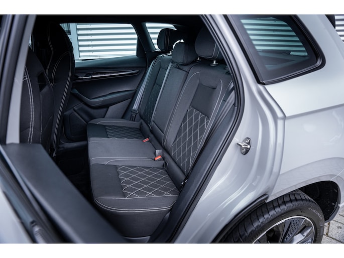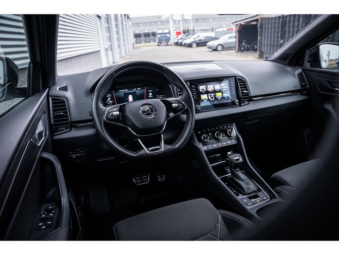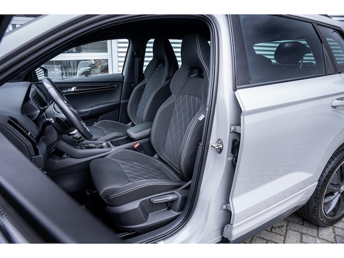 Met een auto als deze Škoda Karoq komt u absoluut goed voor de dag. De aandrijving komt voor rekening van een benzinemotor en een automatische transmissie. In de verwarmbare voorstoelen zitten is elke keer een welkom gevoel. In deze uitvoering is de Karoq voorzien van mooie, maar ook functionele sportstoelen. Koude handen? Da's voorbij met het verwarmd stuurwiel. Pak aan! De koplampen zijn voorzien van de allernieuwste lichttechnologie: matrix LED-verlichting. Bij de uitrusting van deze Škoda horen onder meer 18 inch lichtmetalen velgen, extra getint glas, in delen neerklapbare achterbank, LED-achterlichten, verstelbare lendensteunen en verwarmde ruitensproeiers. Alle functies die u onderweg nodig heeft, worden permanent geregistreerd en zijn afleesbaar op het digitale dashboard. Altijd achter zicht, nooit meer nekkramp! De achteruitrijcamera maakt het supermakkelijk. De meest gebruikte voertuigfuncties laten zich met behulp van uw stem bedienen. Fijn, zo'n trekhaak. Maar niet constant nodig. Daarom heeft deze Škoda Karoq een elektrisch inklapbare trekhaak. Functies activeren en storingen opsporen? Bij deze auto gaat het eenvoudig via uw smartphone. Overal en altijd. Wat u ook in deze auto kunt vinden zijn navigatiesysteem, automatische airconditioning, draadloos opladen, DAB ontvangst, regensensor en cruise control. Met de nieuwste technologieën aan boord is deze Škoda in staat om zelf te reageren op potentieel gevaarlijke situaties op de weg. Mindert een voorligger onverwachts te veel vaart, dan komt de forward collision warning in actie en waarschuwt meteen. Ook is deze auto uitgerust met een systeem dat u waarschuwt wanneer u achter het stuur in slaap dreigt te vallen. Met voorzieningen als hill hold functie, autonoom remsysteem en bandenspanningcontrolesysteem, bent u altijd veilig onderweg. Is uw nieuwsgierigheid gewekt? Bel ons dan snel om deze auto te komen bekijken.