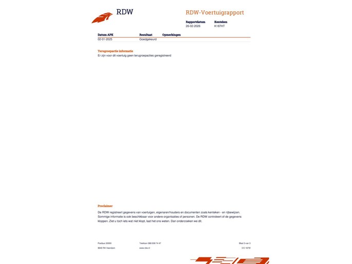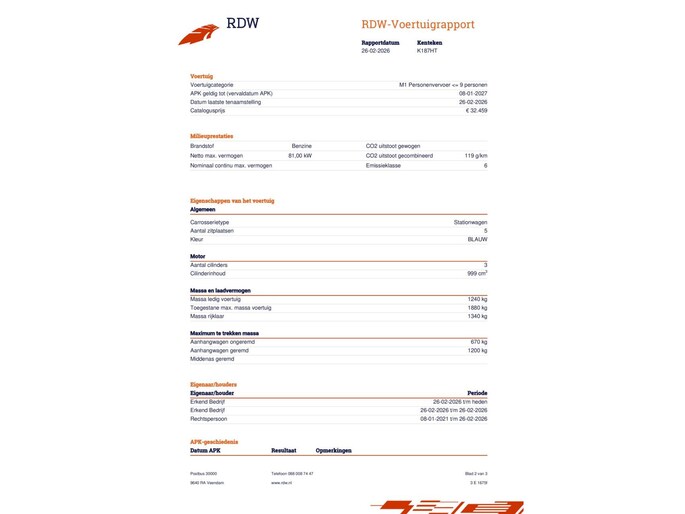 Kilometerstand gecontroleerd