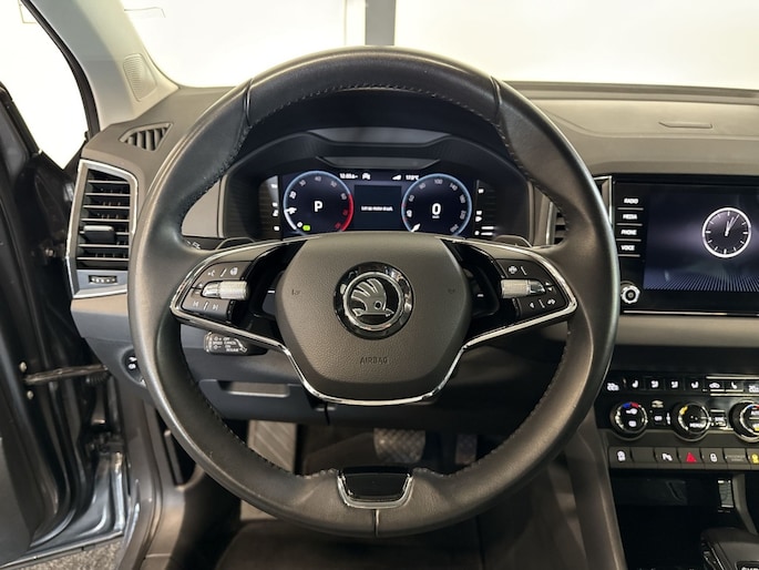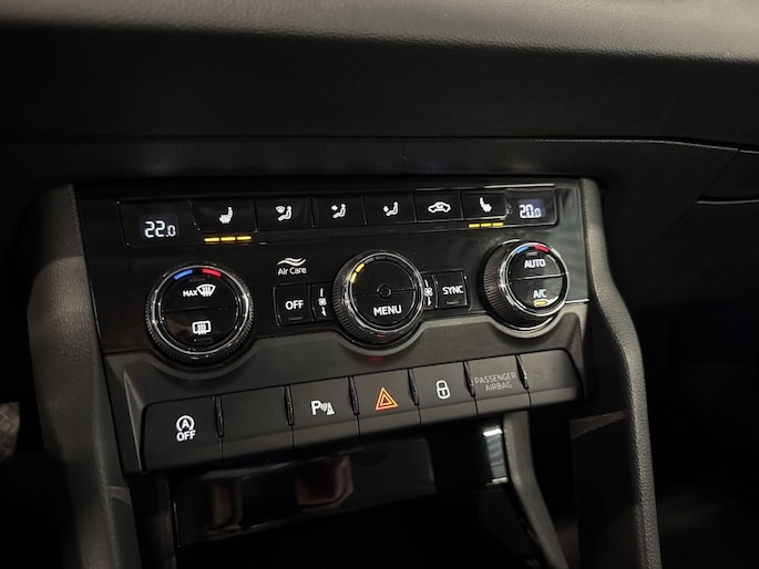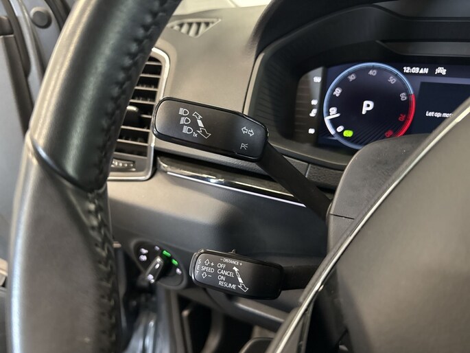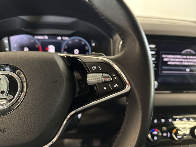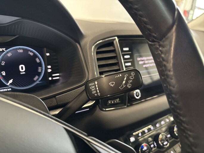 Deze Karoq is uitgerust met vele handige opties die het rijden nog plezieriger maken. De buitenspiegels zijn elektrisch verstelbaar en verwarmbaar, wat vooral tijdens koudere dagen goed van pas komt. Dankzij de schakelpaddles kun je moeiteloos schakelen en geniet je van een sportieve rijervaring. De dimlichten schakelen automatisch in en uit, wat zorgt voor een optimale verlichting en goed zicht op de weg. Het stuur is bekleed met leder, wat niet alleen luxe uitstraalt maar ook prettig aanvoelt tijdens het rijden. Wanneer je extra bagageruimte nodig hebt, kun je de achterbank eenvoudig in delen neerklappen, zodat je meer spullen kunt meenemen.