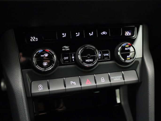De automatische veiligheidssystemen in deze Skoda fungeren als een extra paar ogen. En dat niet alleen, ze kunnen ook actief ingrijpen, om zo u en uw passagiers te beschermen. Onderweg fungeert de verkeersbord-detectie als het ware als uw bijrijder en attendeert u op de verkeersborden langs de weg. Het Lane-keeping systeem zorgt dat u mooi binnen de lijntjes blijft. Ongemerkt buiten de rijstrook komen is er niet meer bij. De sensor van het forward collision warning-systeem registreert permanent de afstand tot voorliggers en grijpt in als een botsing dreigt. Verder is deze auto uitgerust met front assist, hill hold functie, vermoeidheidsherkenning, autonoom remsysteem en bandenspanningcontrolesysteem.