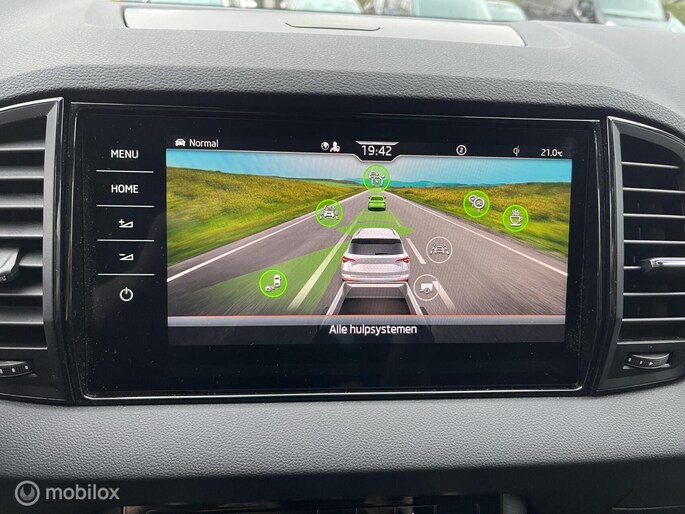 Gezien z'n capaciteiten en design is deze Skoda Karoq van de jongste generatie. Met z'n uitermate bescheiden meterstand koopt u eigenlijk een nieuwe auto. Maar dat betaalt u mooi niet. De aandrijving komt voor rekening van een benzinemotor en een automatische transmissie. 's Winters op pad gaan kan een behoorlijke uitdaging zijn. Daarom is deze Skoda Karoq voorzien van weldadige verwarmbare voorstoelen. Laat die bochten maar komen! In de sportstoelen zitten u en uw bijrijder altijd goed! Het interieur baadt in daglicht dankzij het elektrisch bediende glazen panoramadak. De achterklep opent automatisch met een druk op de knop. Handig als u met volle handen staat. Ook de passagiers achterin ervaren het ultieme comfort, dankzij de verwarmde achterbank. Ook 19 inch lichtmetalen velgen, Full LED koplampen, donker getint glas achter, in delen neerklapbare achterbank, LED-achterlichten en verstelbare lendensteunen zijn aan boord.